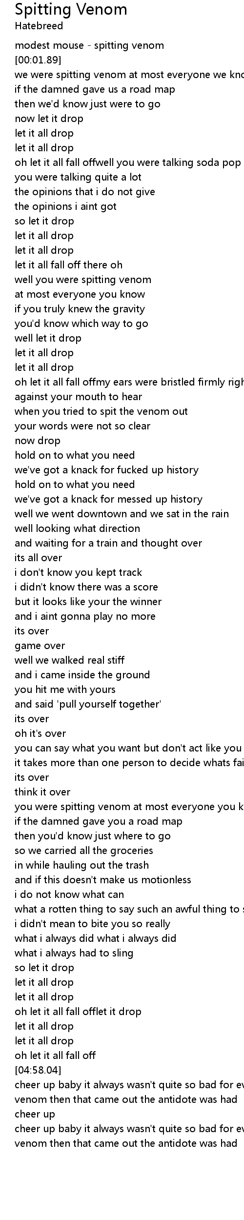 | [01:22.06] | when you tried to spit the venom out |