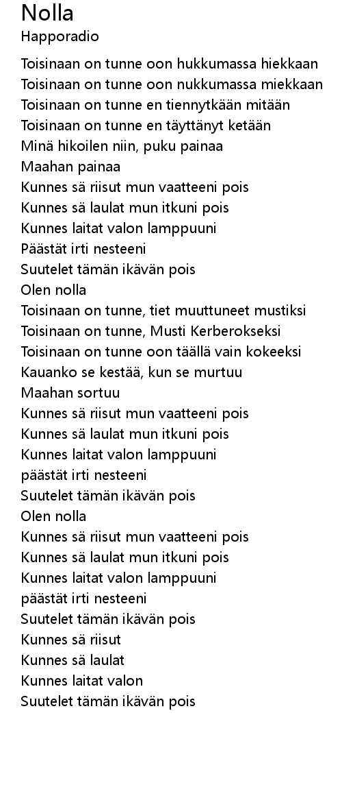 | Toisinaan on tunne oon t ll vain kokeeksi | |