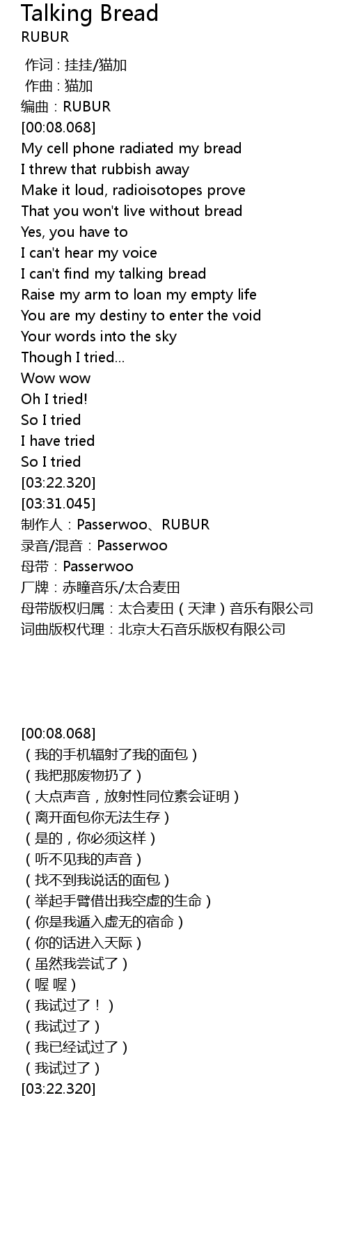 | [03:32.120] | zhì zuò rén: Passerwoo RUBUR |