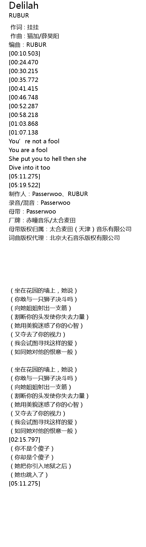 | [05:22.486] | 母带:Passerwoo |