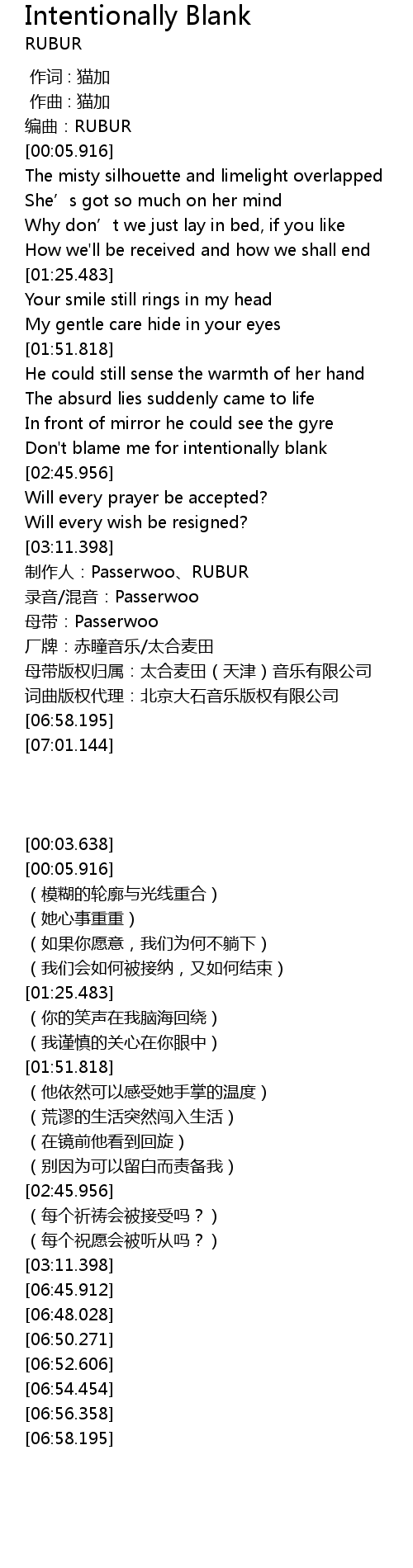 | [06:45.912] | 制作人:Passerwoo、RUBUR |