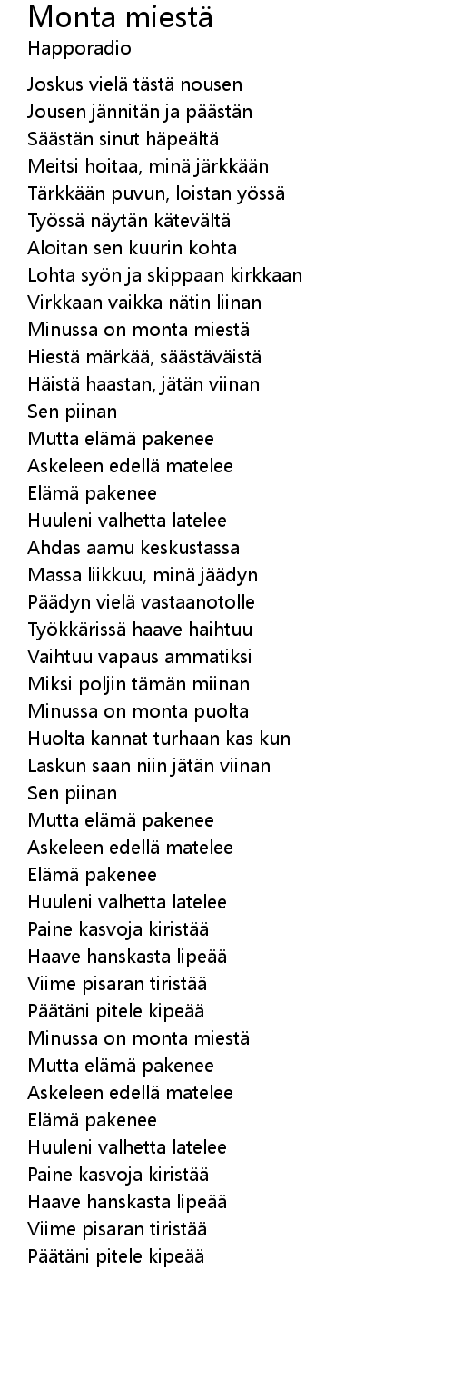 | Song | Monta miestä |