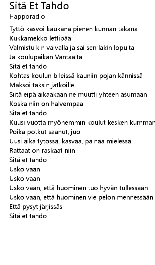 | Usko vaan, ett huominen tuo hyv n tullessaan | |