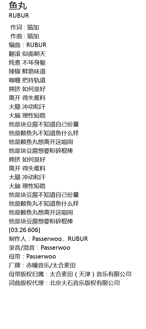 | [03:27.007] | 制作人:Passerwoo、RUBUR |