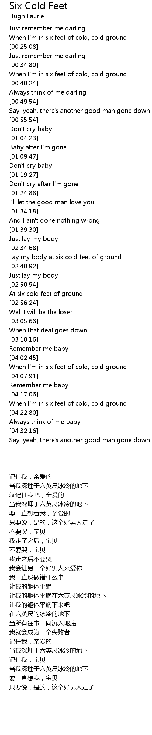 Lay my body at six cold feet of ground |