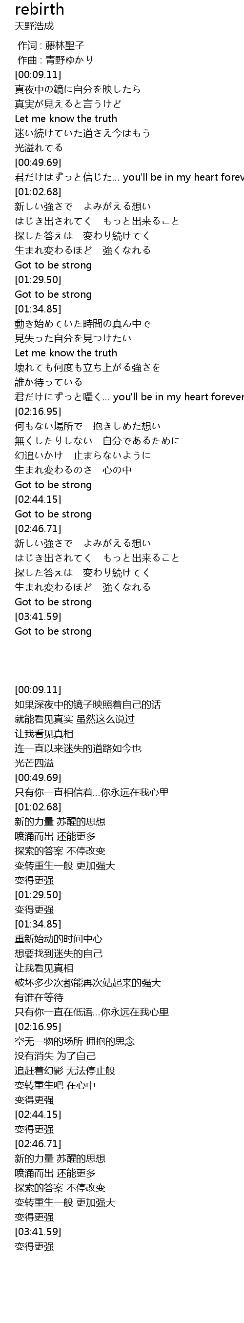| [03:34.89] | 生まれ変わるほど 強くなれる |