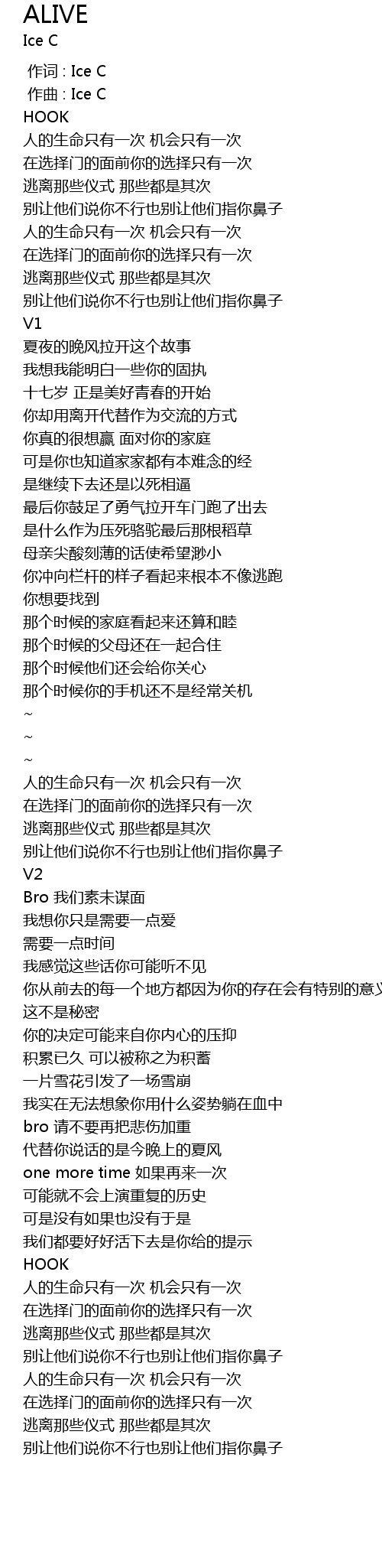 | [00:00.000] | 作词 : Ice C |