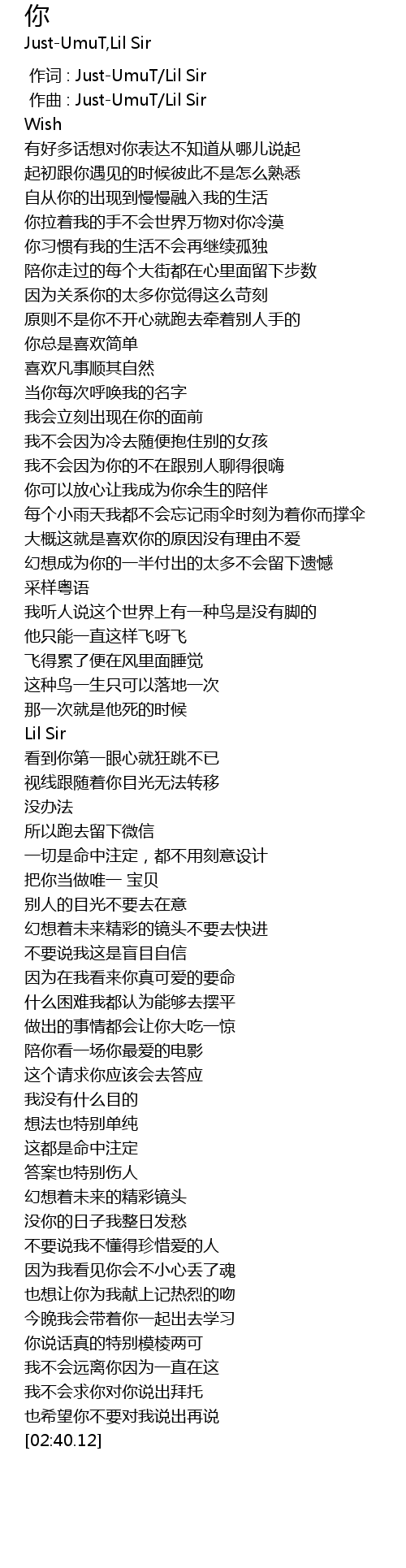 | [00:00.000] | 作词 : Just-UmuT/Lil Sir |