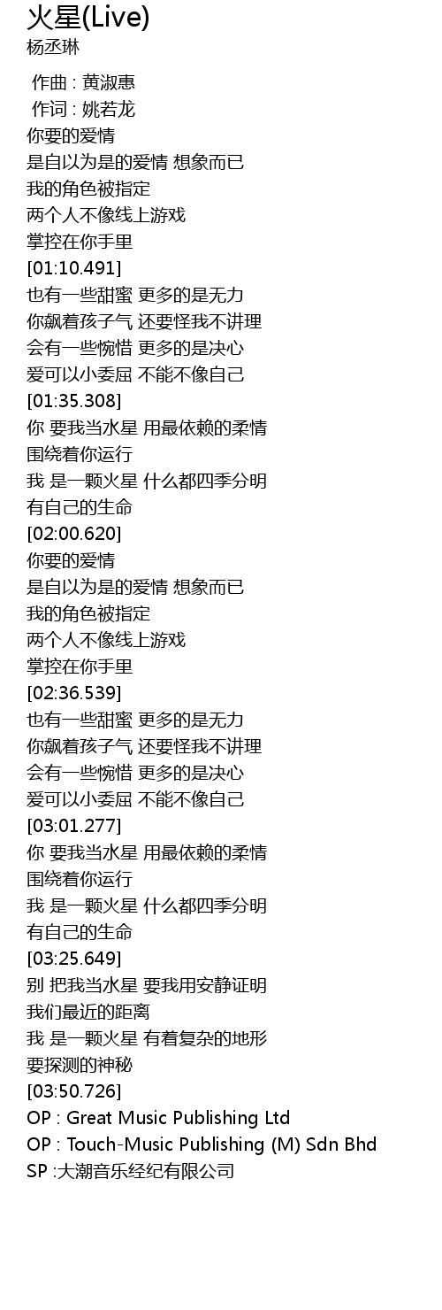 | [03:58.563] | SP :大潮音乐经纪有限公司 |