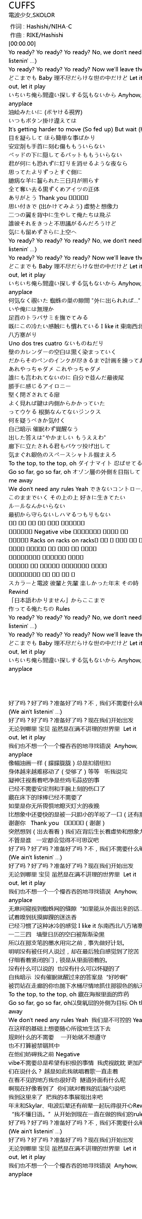 | [00:00.000] | 作词 : Hashishi/NIHA-C |