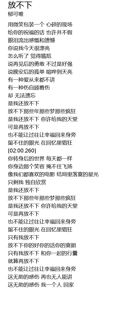 | [02:52.290] | 可是再放不下 |
