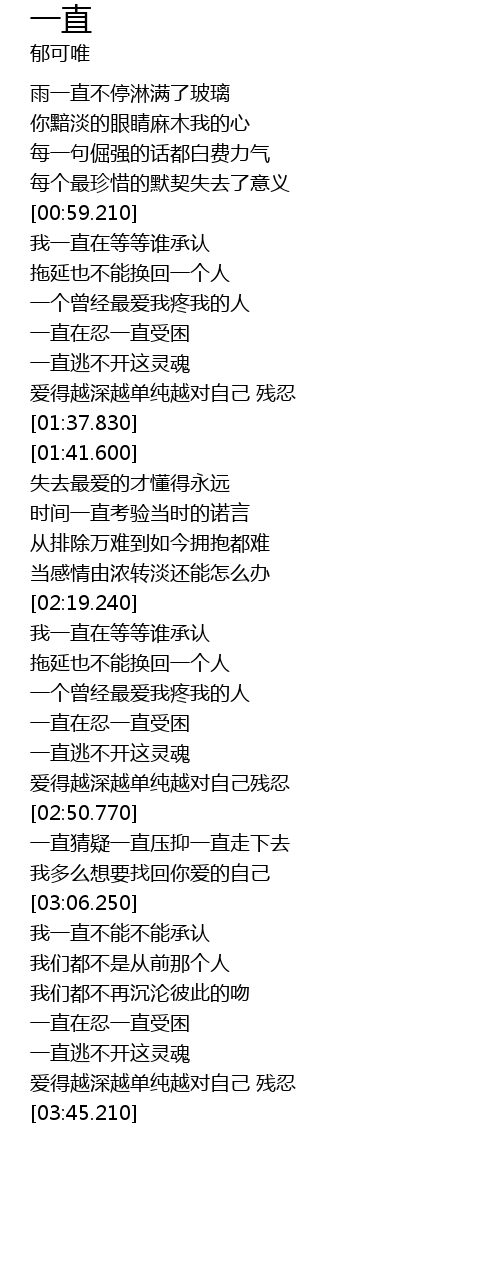 | [02:51.190] | 一直猜疑一直压抑一直走下去 |