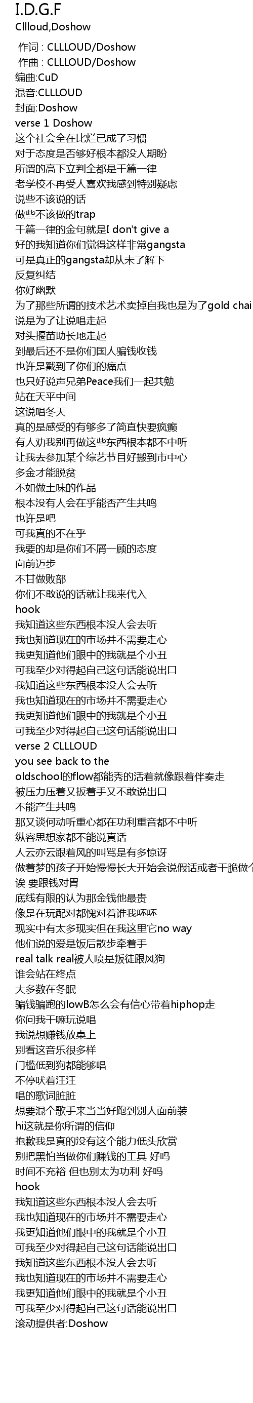 | [00:01.000] | zuò qǔ : CLLLOUD Doshow |