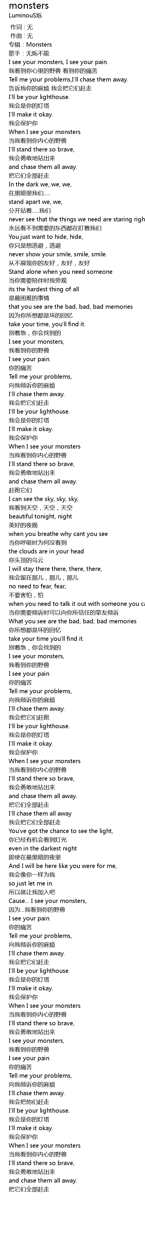 | [00:19.419] | When I see your monsters |
