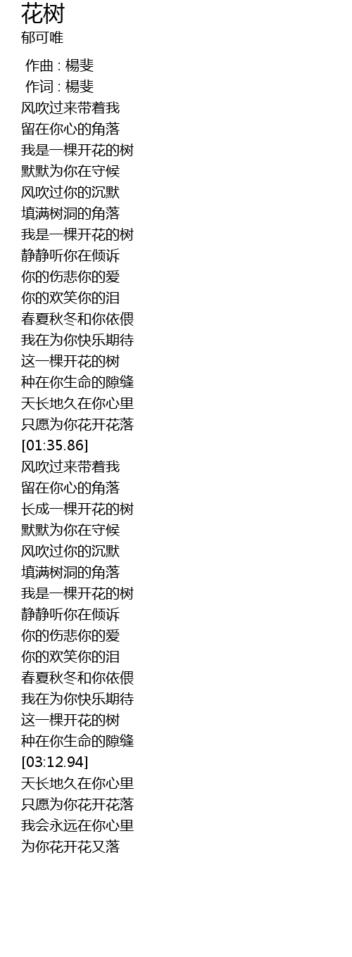 | [00:34.28] | 我是一棵开花的树 |