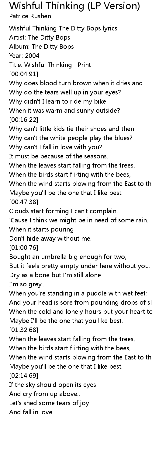 [00:02.03] Wishful Thinking The Ditty Bops lyrics