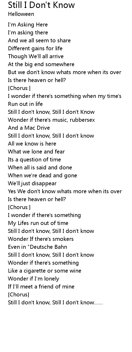 Still I don't know, Still I don't Know |