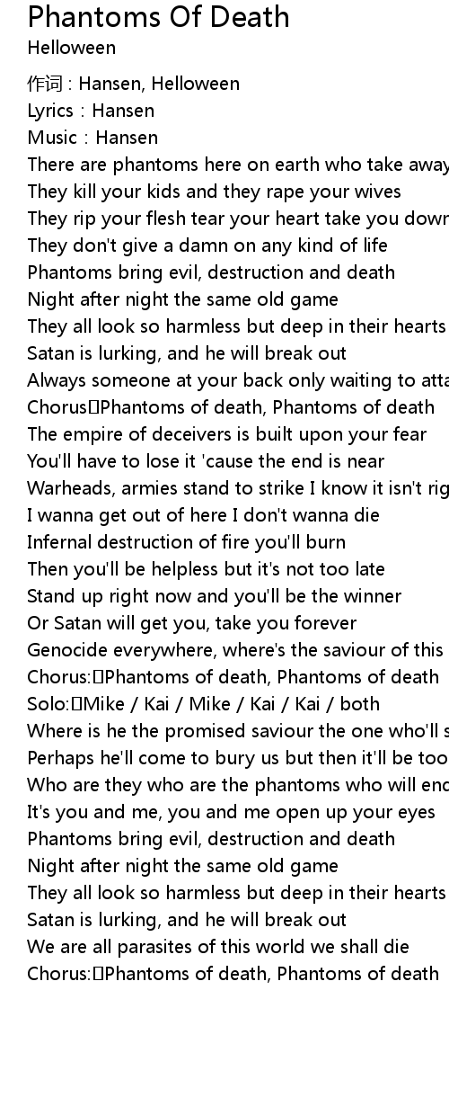 | Chorus: Phantoms of death, Phantoms of death | |