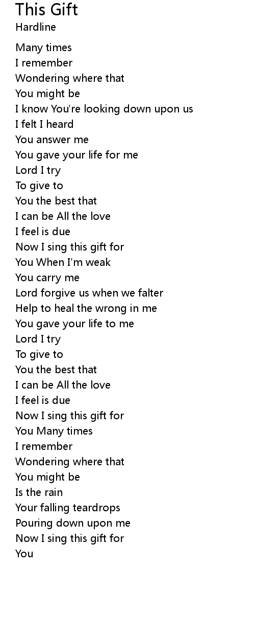 | Now I sing this gift for | |