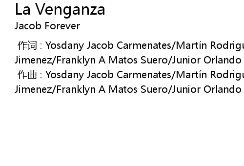 | [00:00.000] | 作词 : Yosdany Jacob Carmenates/Martín Rodriguez/Adan A Alnos Jimenez/Franklyn A Matos Suero/Junior Orlando de la Rosa |