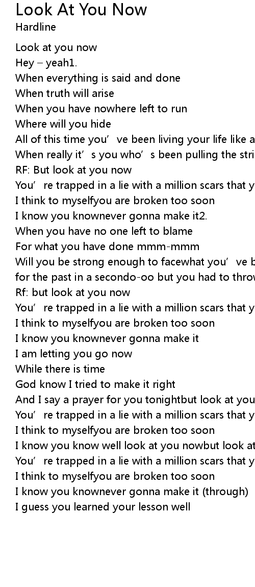 | Will you be strong enough to facewhat you' ve becomeyou had a chance to make up for the past in a secondooo but you had to throw that away | |