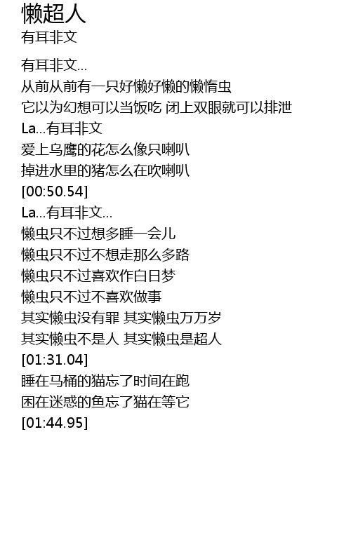 | [01:23.58] | 其实懒虫不是人 其实懒虫是超人 |