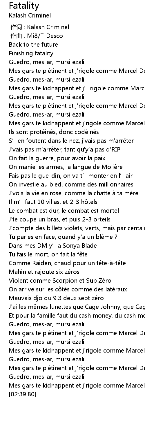 | [02:35.17] | Mes gars te kidnappent et j'rigole comme Marcel Desailly |