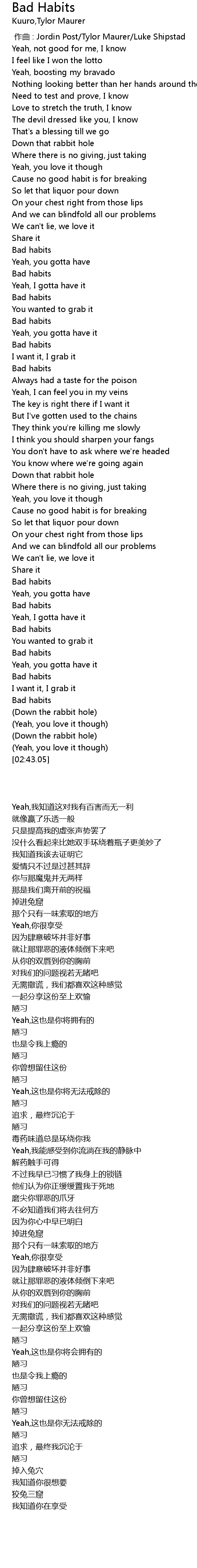 | [00:37.53] | Bad habits |