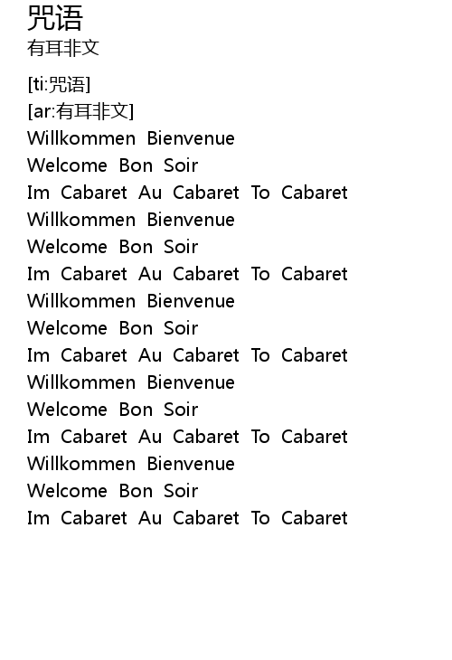 | [01:08.22] | Im Cabaret Au Cabaret To Cabaret |