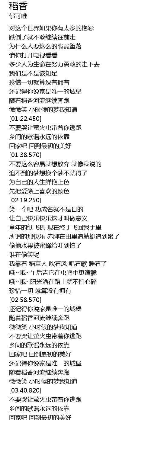 | [03:32.670] | 随着稻香河流继续奔跑 |