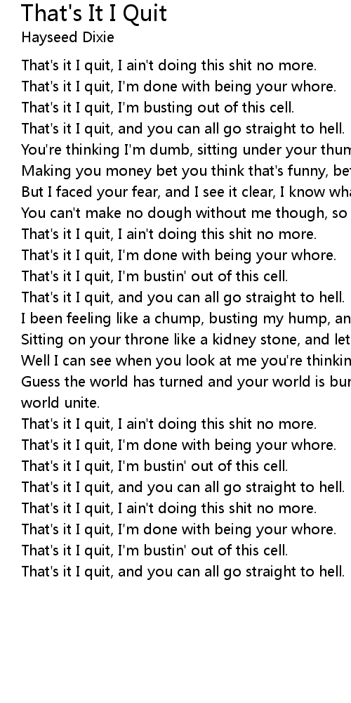 That's it I quit, I ain't doing this shit no more. |