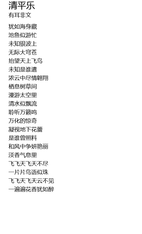 | [02:05.410] | fei fei tian fei tian yun bu jian |