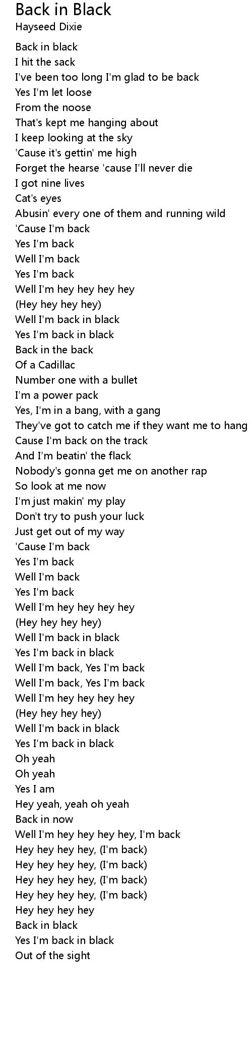 Yes I'm back in black |