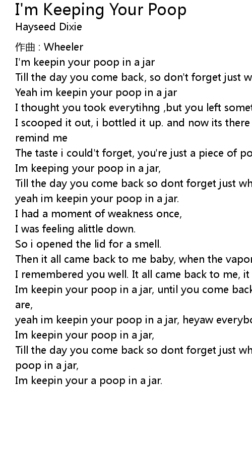 | Im keepin your poop in a jar, until you come back so dont forget just what you are, | |