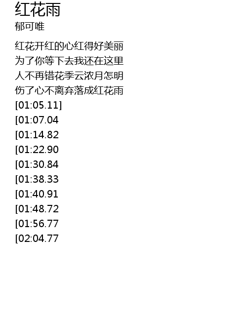 | [00:56.96] | 伤了心不离弃落成红花雨 |