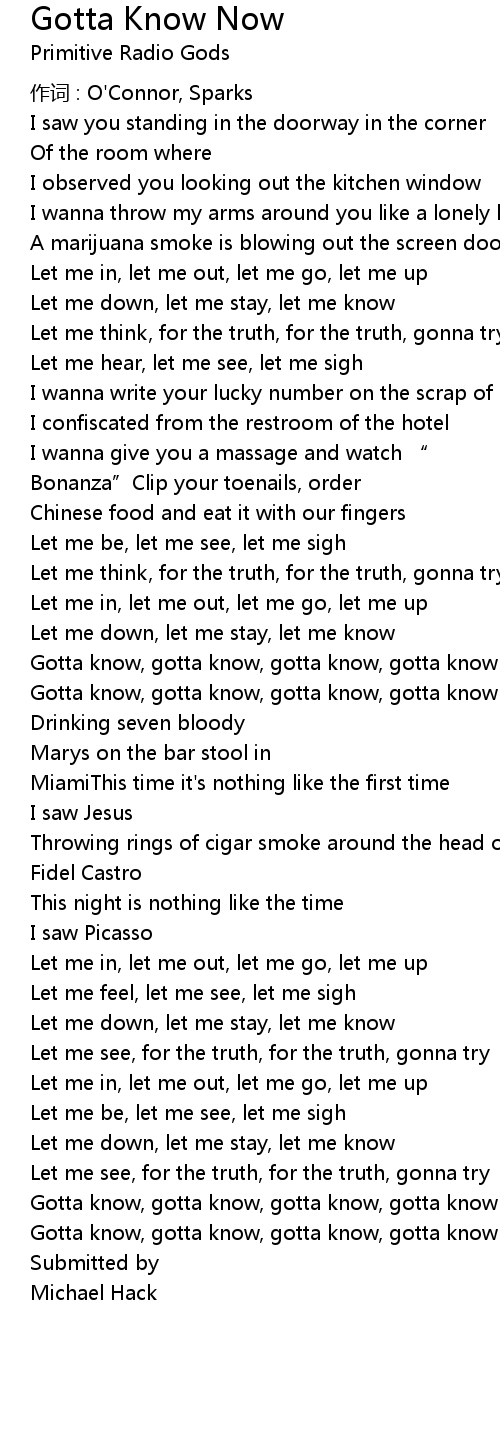 | Gotta know, gotta know, gotta know, gotta know now | |