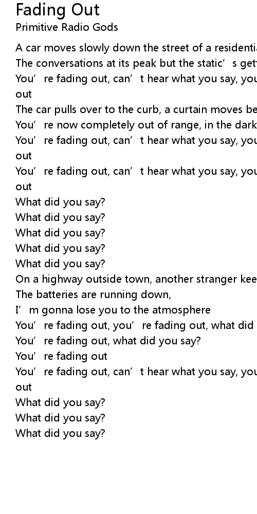 | You' re fading out, can' t hear what you say, you' re fading out, out, out, out | |