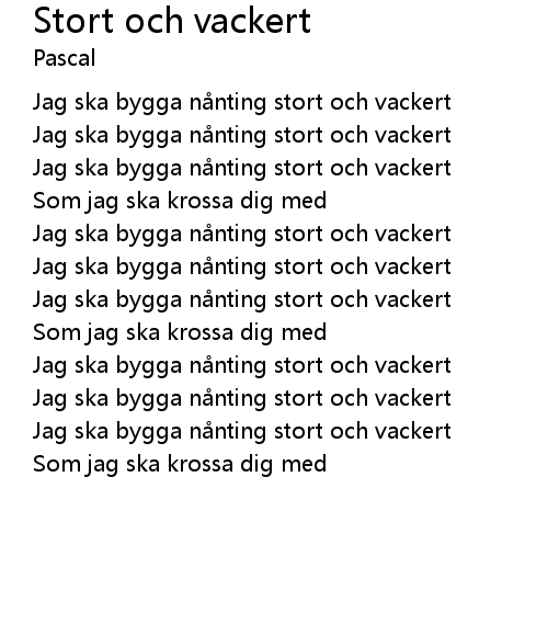 | Song | Stort och vackert |