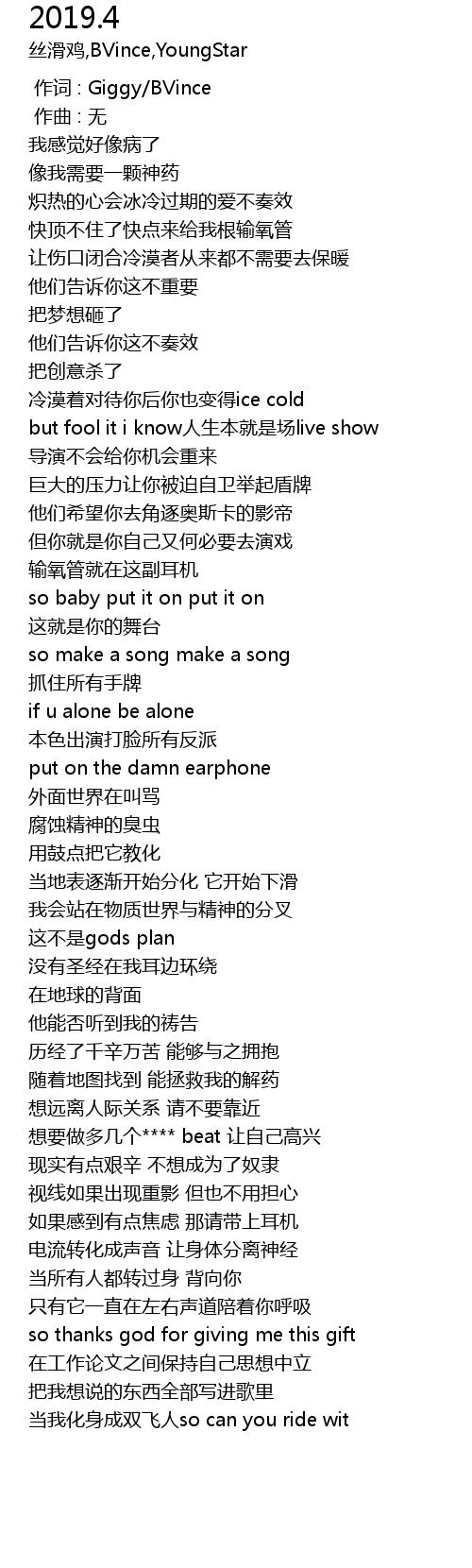 | [00:00.000] | 作词 : Giggy/BVince |