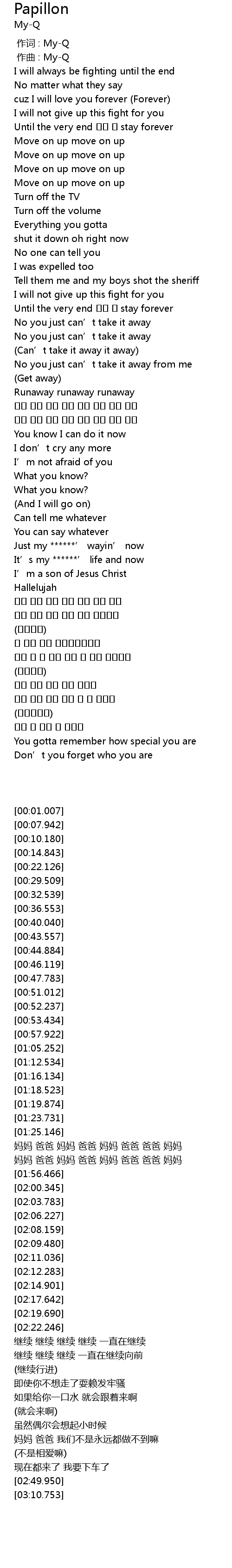 | [00:00.000] | 作词 : My-Q |