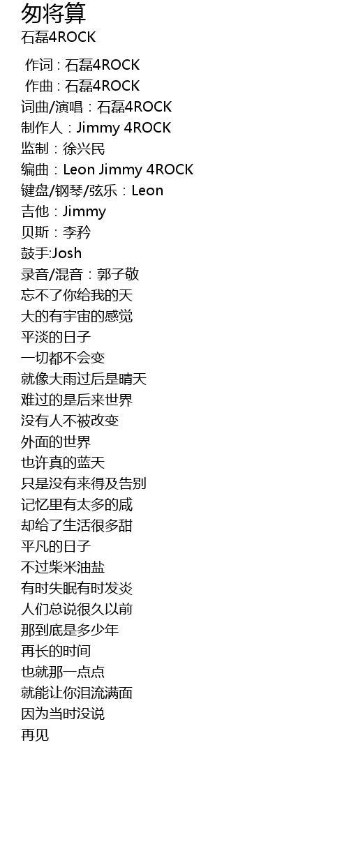 | [00:00.000] | 作词 : 石磊4ROCK |
