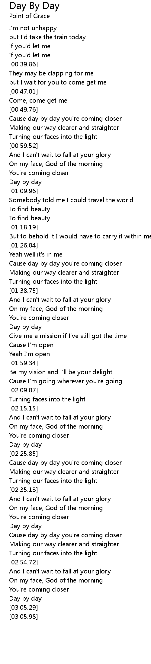 Cause day by day you're coming closer |