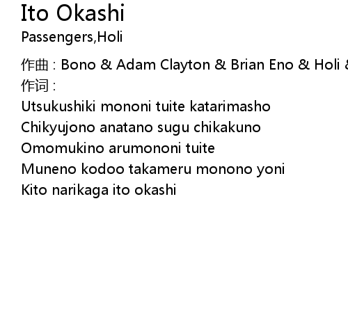 | 作曲 : Bono & Adam Clayton & Brian Eno & Holi & Larry Mullen & The Edge | |