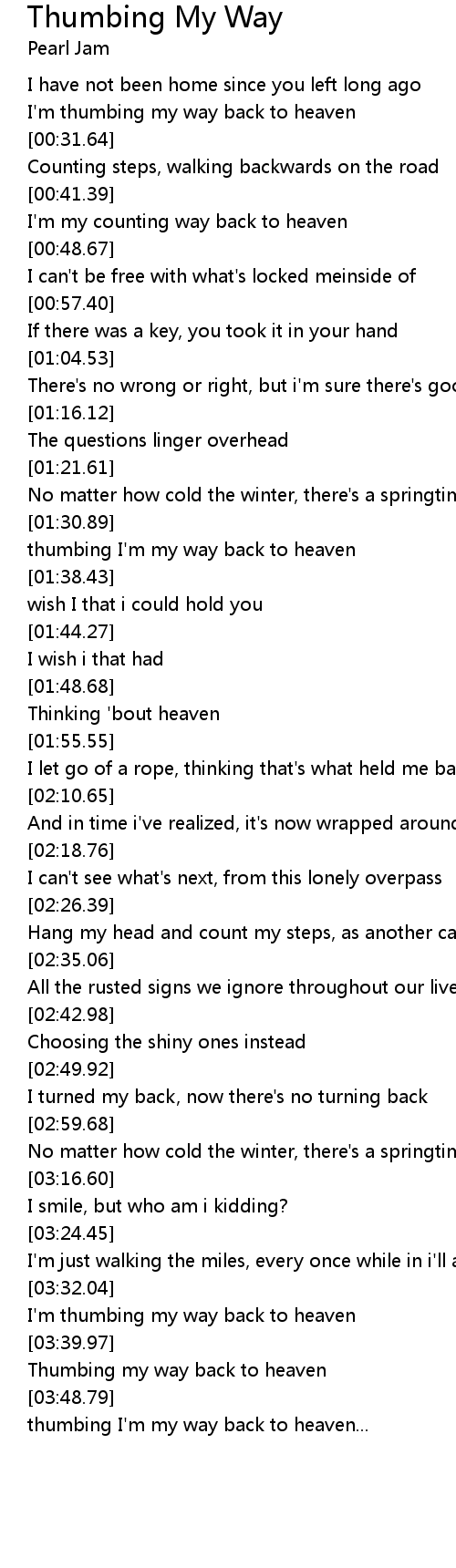 | [03:37.04] | I'm thumbing my way back to heaven |