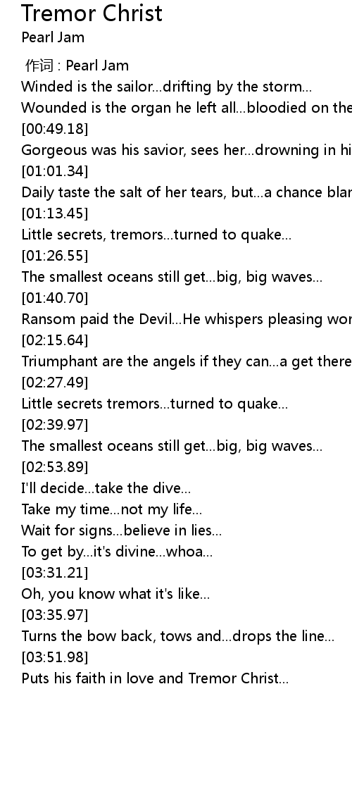 | [03:55.72] | Puts his faith in love and Tremor Christ... |