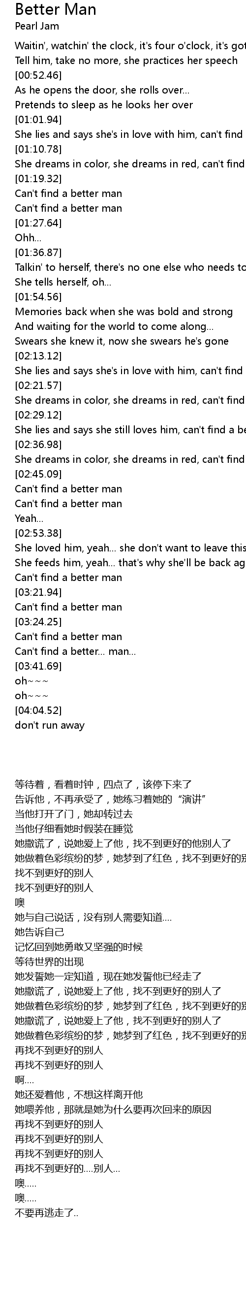 | [02:50.27] | Can't find a better man |