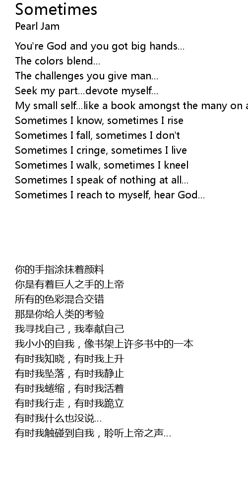 | Sometimes I reach to myself, hear God... |
