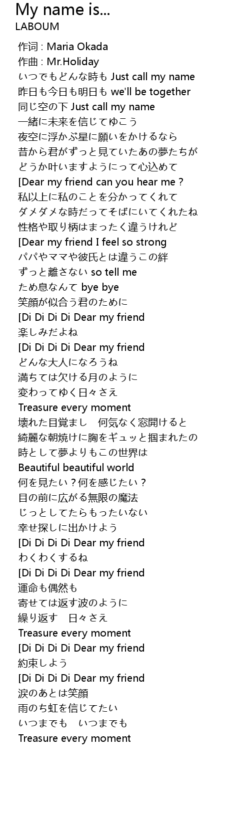 | [02:32.188] [Di Di Di Di Dear my friend] | |
