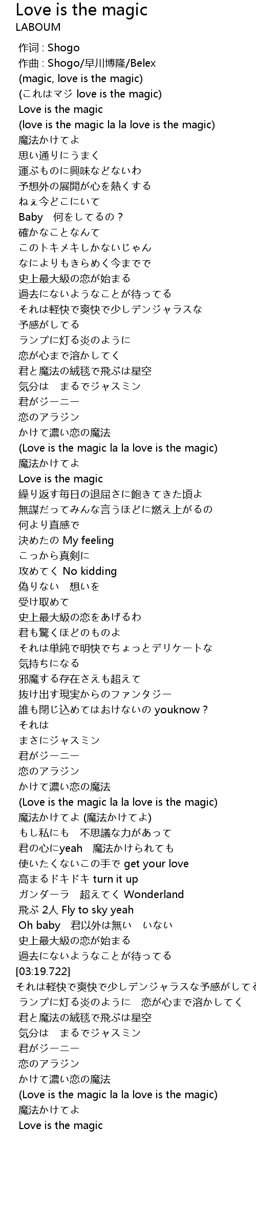 | [03:49.523] | Love is the magic la la love is the magic |