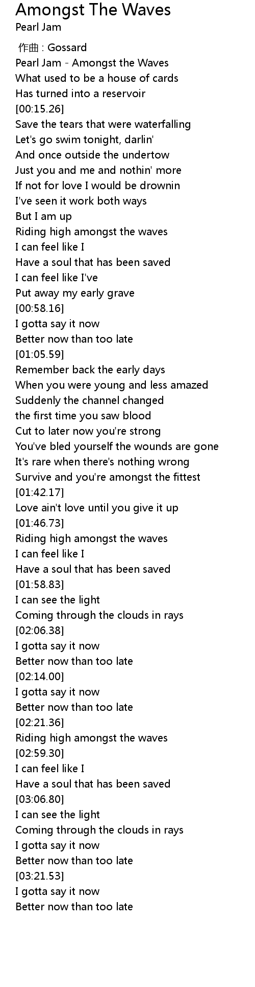 | [00:00.93] | Pearl Jam Amongst the Waves |
